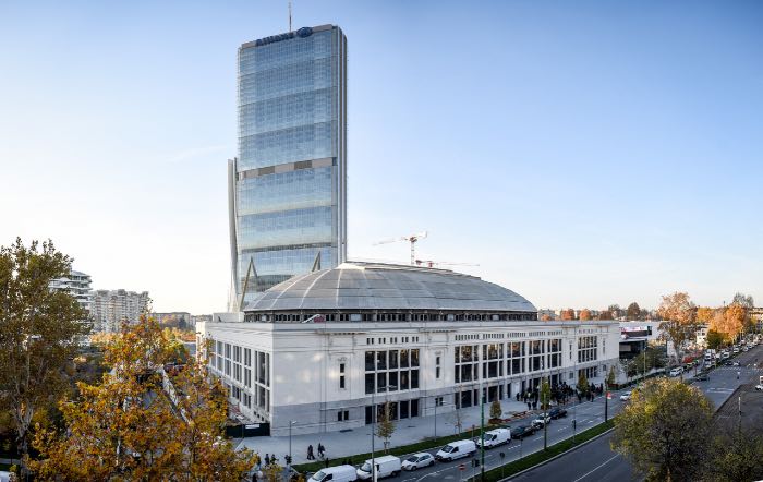 Il Palazzo delle Scintille visto nel suo contesto del quartiere Citylife