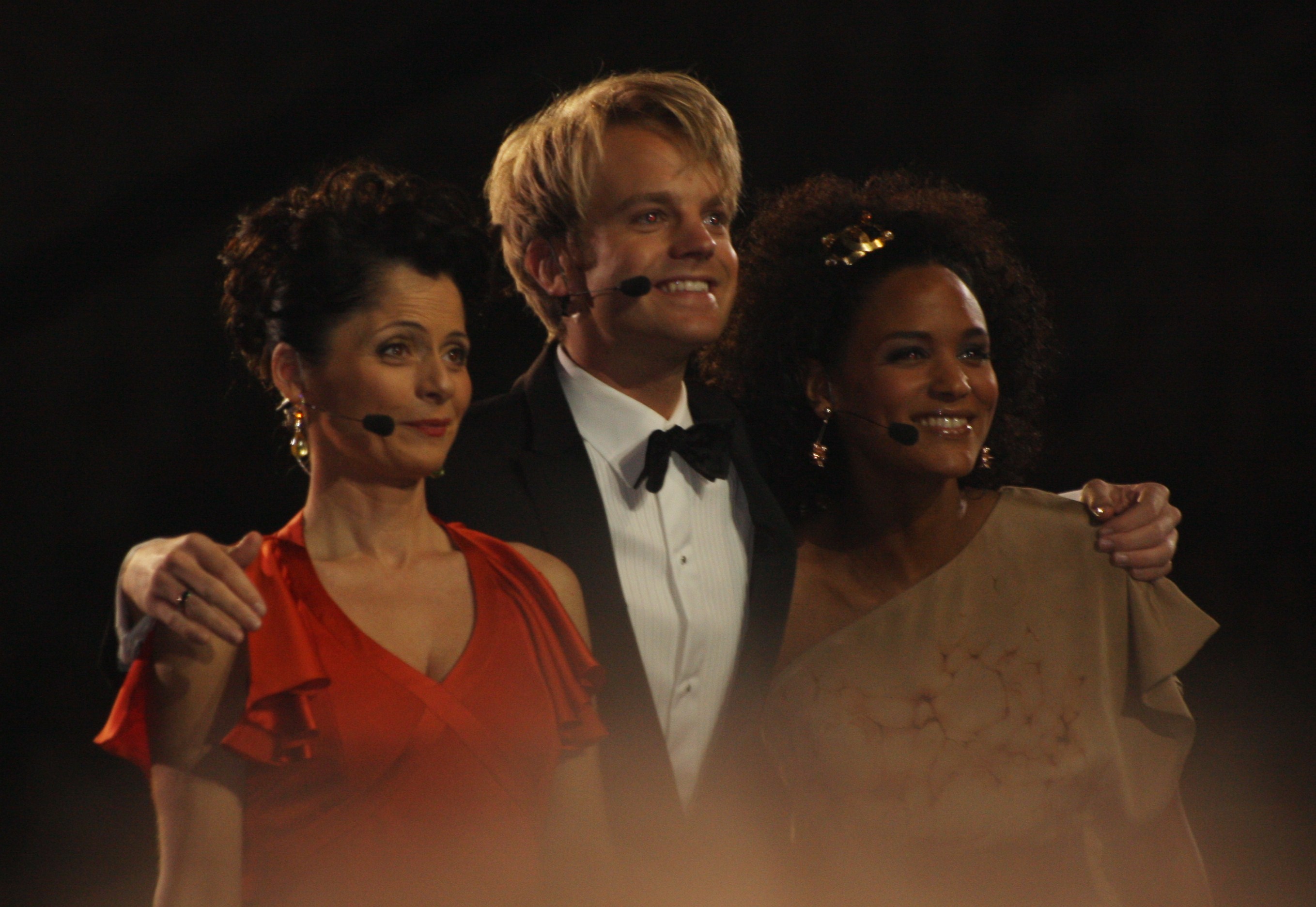 Presenters of the 2010 contest, from left to right – Nadia Hasnaoui, Erik Solbakken and Haddy Jatou N’jie.