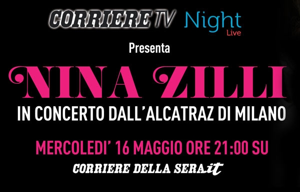 Questa sera, mercoledì 16 maggio, alle ore 21.00 collegati al sito Corriere.it (http://www.corriere.it/) per vedere gratuitamente e comodamente sul tuo computer l’esclusivo streaming del concerto di Nina Zilli, trasmesso dalla web TV del Corriere della Sera.
